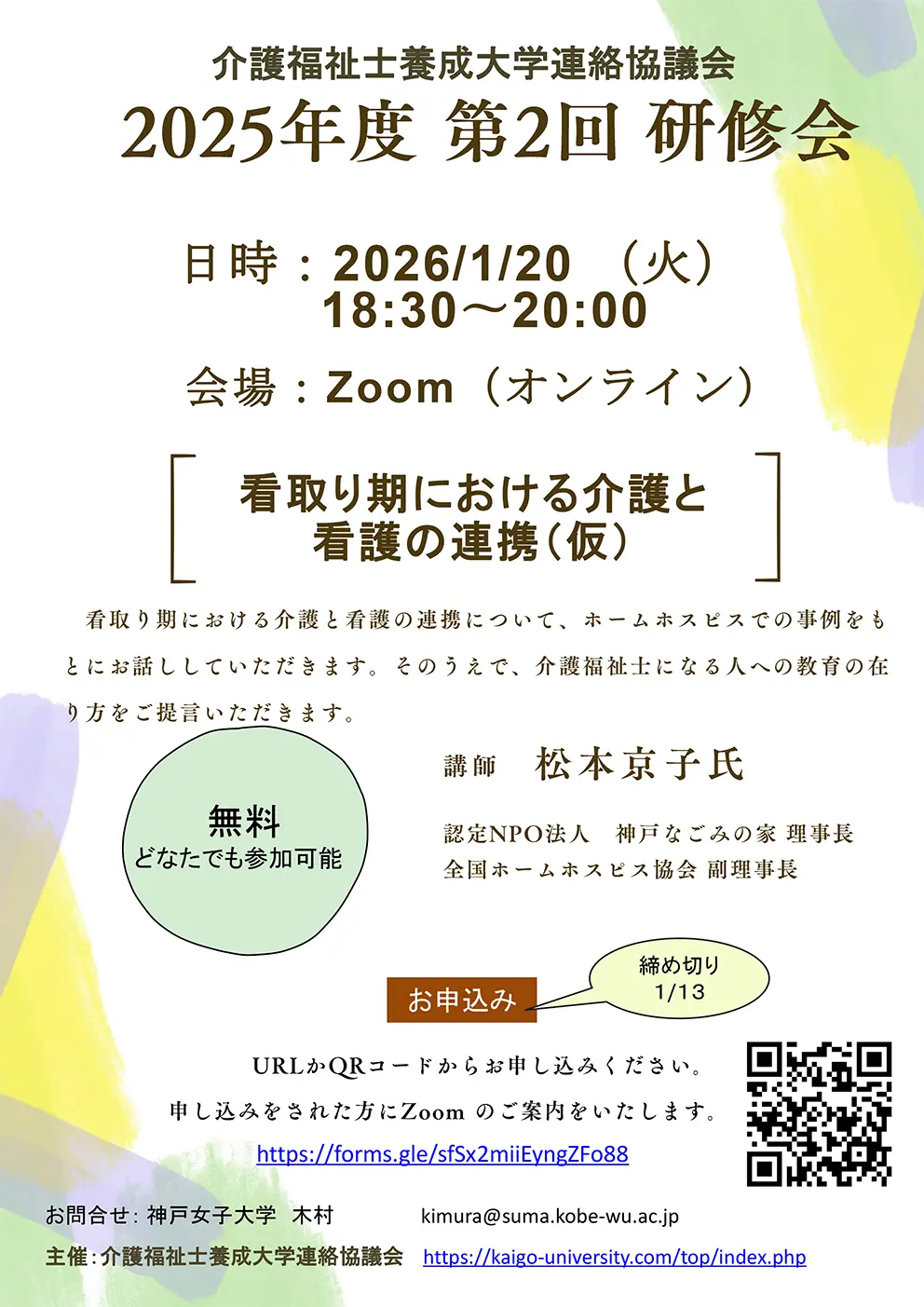 2025年度 第2回 研修会のご案内:看取り期における介護と看護の連携(仮)